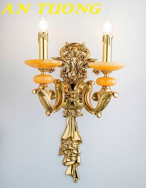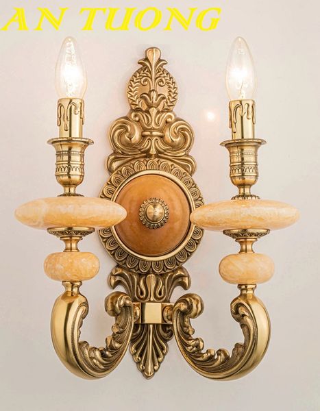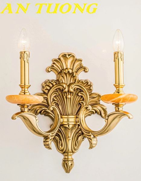 Đèn tường cổ điển bằng đồng đôi 2 bóng nến trang trí nội thất cổ điển cao cấp | Mẫu 002
