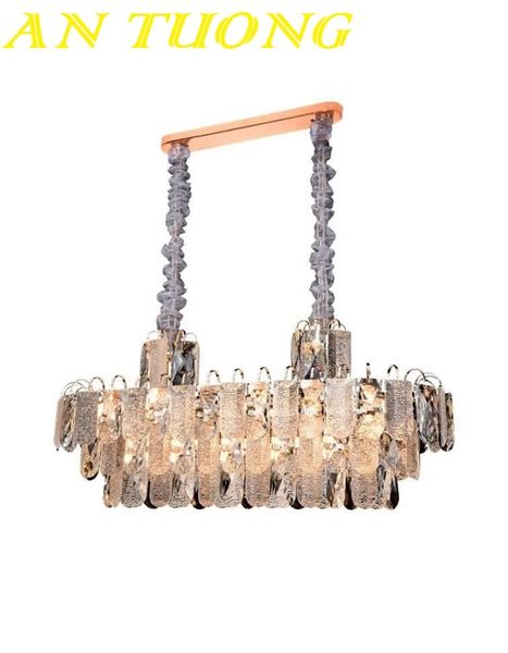 🔹 Đèn thả pha lê dài treo bàn ăn 6–8 ghế