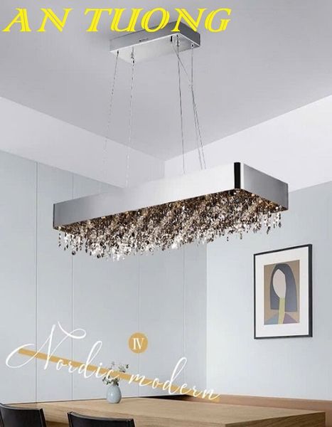 🔹 Đèn thả pha lê dài treo bàn ăn 6–8 ghế